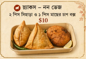 Snacks - Non Veg - 2 pc Singara & 1 pc macher chop Box